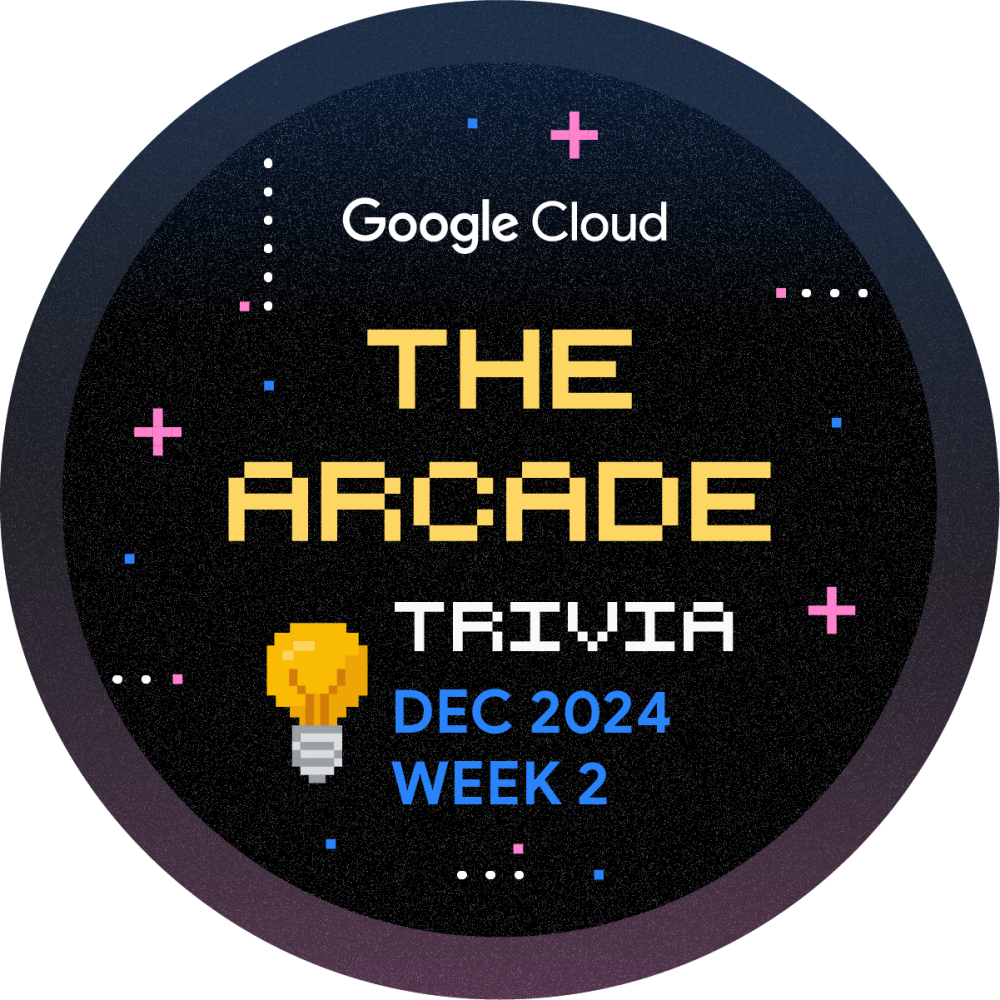 Hey there! You're invited to game on with the Arcade Trivia for December Week 2! Play throughout the month and boost your cloud learning journey. Every week, we'll release a new set of questions to test your knowledge of Google Cloud Platform. Get started now and earn the December Trivia Week 2 badge!