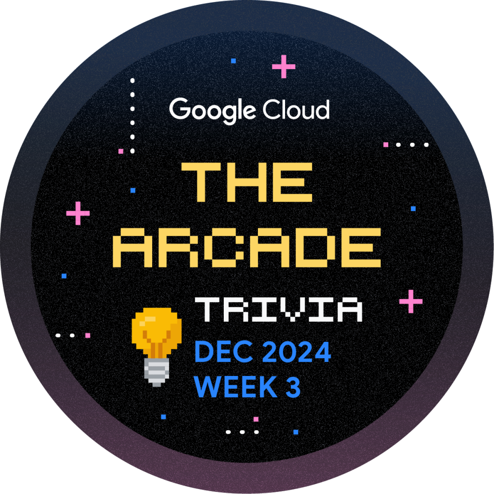 Hey there! You're invited to game on with the Arcade Trivia for December Week 3! Play throughout the month and boost your cloud learning journey. Every week, we'll release a new set of questions to test your knowledge of Google Cloud Platform. Get started now and earn the December Trivia Week 3 badge!