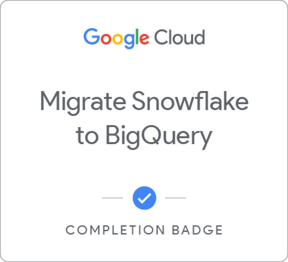 This workload aims to upskill Google Cloud partners to perform specific tasks associated with priority workloads. Learners will perform the tasks of migrating data from Snowflake to BigQuery. Sample data will be used during the migration. Learners will complete several labs that focus on the process of transferring schema, data and related processes to corresponding Google Cloud products.There will be one or more challenge labs that will test the learners' understanding of the topics. "This learning path aims to upskill Google Cloud partners to perform specific tasks associated with priority workloads. Learners will perform the tasks of migrating data from Snowflake to BigQuery.