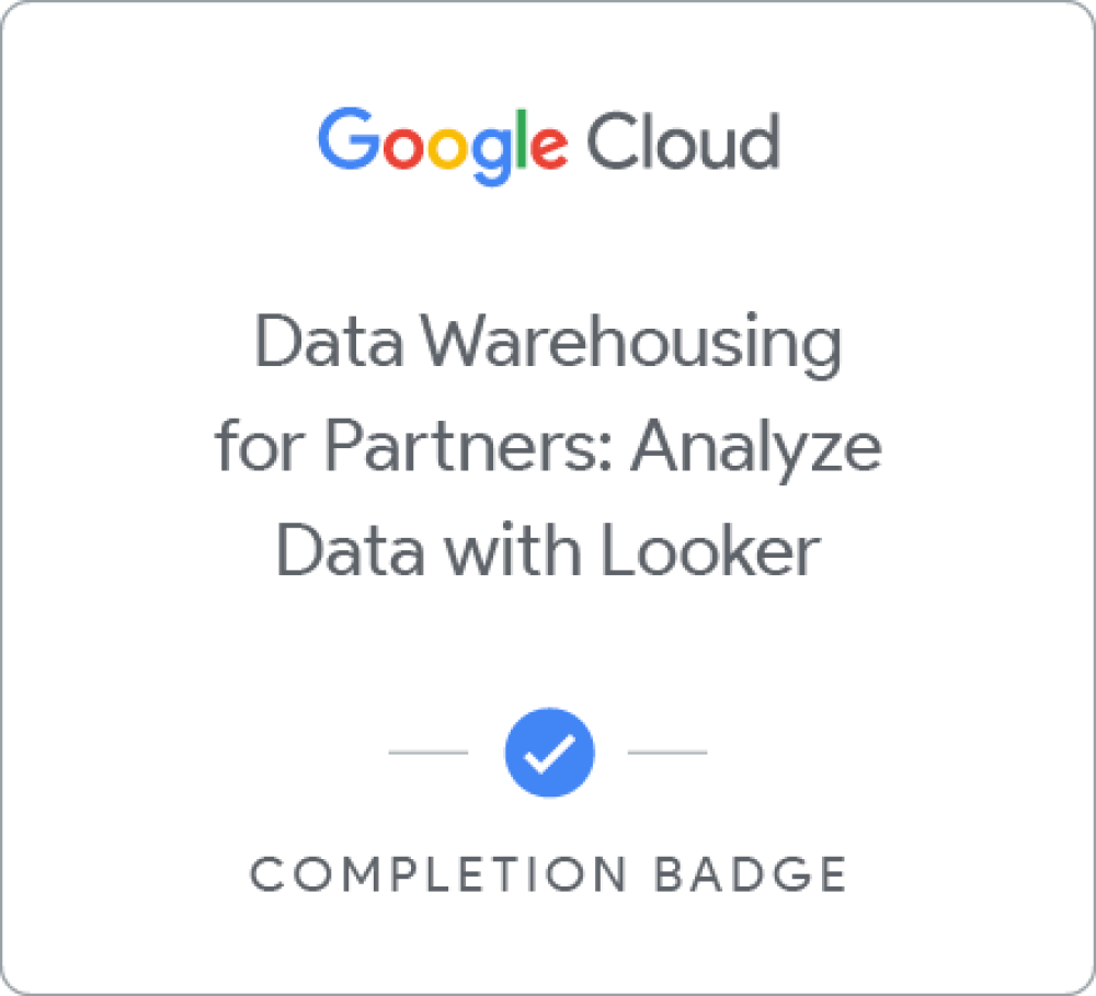 Complete the introductory Prepare Data for Looker Dashboards and Reports skill badge course to demonstrate skills in the following: filtering, sorting, and pivoting data; merging results from different Looker Explores; and using functions and operators to build Looker dashboards and reports for data analysis and visualization.
