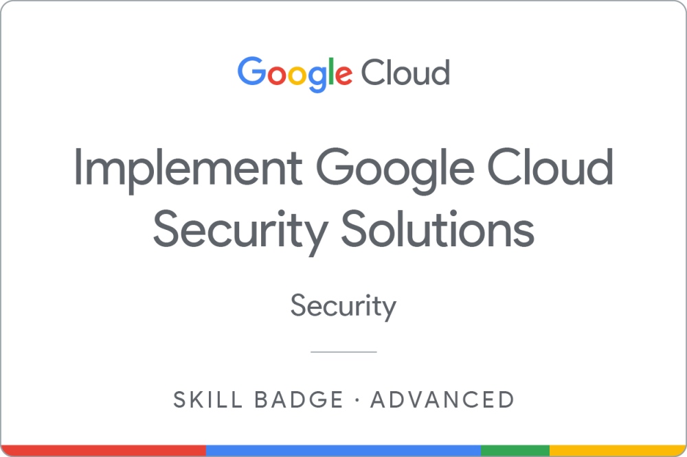 Complete the intermediate Implement Cloud Security Fundamentals on Google Cloud skill badge course to demonstrate skills in the following: creating and assigning roles with Identity and Access Management (IAM); creating and managing service accounts; enabling private connectivity across virtual private cloud (VPC) networks; restricting application access using Identity-Aware Proxy; managing keys and encrypted data using Cloud Key Management Service (KMS); and creating a private Kubernetes cluster.