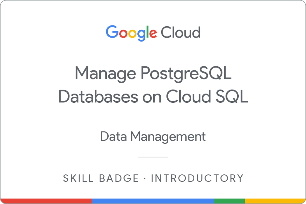 Complete the introductory Create and Manage Cloud SQL for PostgreSQL Instances skill badge to demonstrate skills in the following: migrating, configuring, and managing Cloud SQL for PostgreSQL instances and databases.