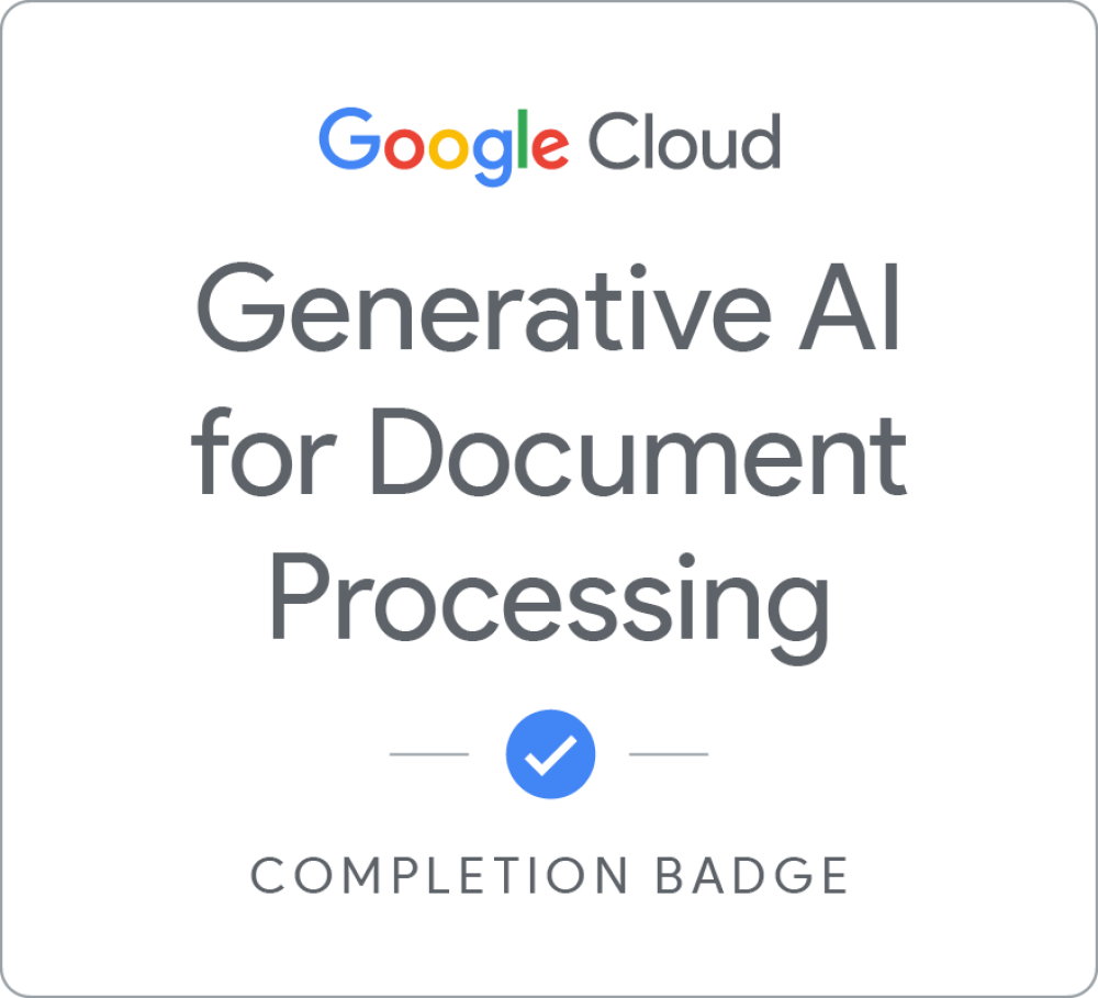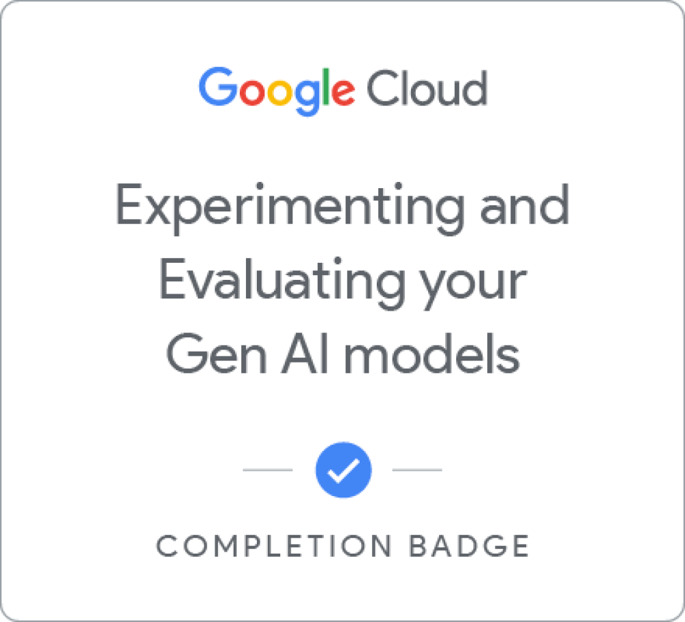 Earn a skill badge by passing the final quiz, you'll demonstrate your understanding of foundational concepts in generative AI. A skill badge is a digital badge issued by Google Cloud in recognition of your knowledge of Google Cloud products and services. Share your skill badge by making your profile public and adding it to your social media profile.