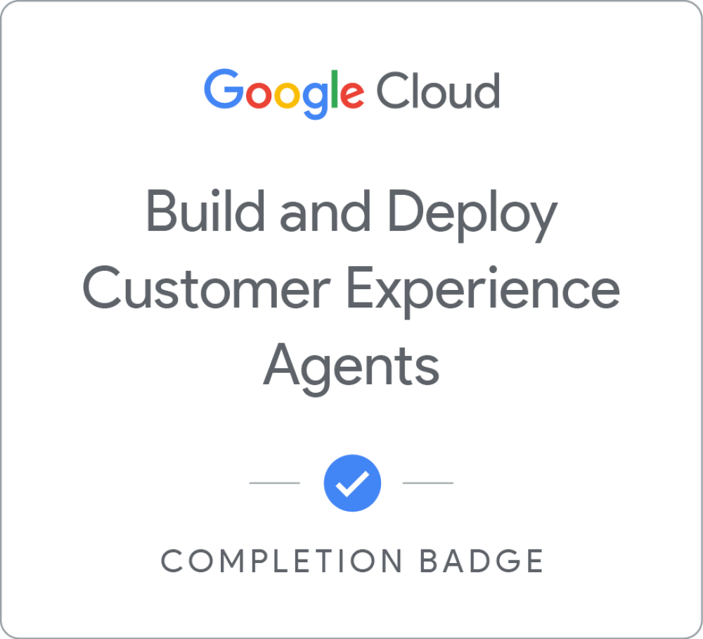 Complete the Improve customer and agent satisfaction with Agent Assist skill badge to demonstrate your proficiency in configuring basic conversational agents that can escalate actions to human agents, and configuring Agent Assist to help human agents with customer queries. You prove your knowledge in configuring Generators for summarization, classification and recommendation of tickets as well leverage tools such as Generative Knowledge Assist, to provide further context to human agents. A skill badge is an exclusive digital badge issued by Google Cloud in recognition of your proficiency with Google Cloud products and services and tests your ability to apply your knowledge in an interactive hands-on environment. Complete the assessment challenge lab, to receive a skill badge that you can share with your network. When you complete this course, you can earn the badge displayed here and claim it on Credly! Boost your cloud career by showing the world the skills you have developed!