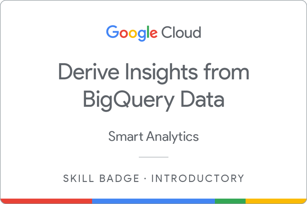 Mit dem Skill-Logo zum Kurs Informationen aus BigQuery-Daten ableiten weisen Sie Grundkenntnisse in folgenden Bereichen nach: Schreiben von SQL-Abfragen, Abfragen öffentlicher Tabellen, Laden von Beispieldaten in BigQuery, Beheben häufig auftretender Syntaxfehler mithilfe der Abfragevalidierung in BigQuery und Erstellen von Berichten in Looker Studio durch Herstellen einer Verbindung zu BigQuery-Daten.