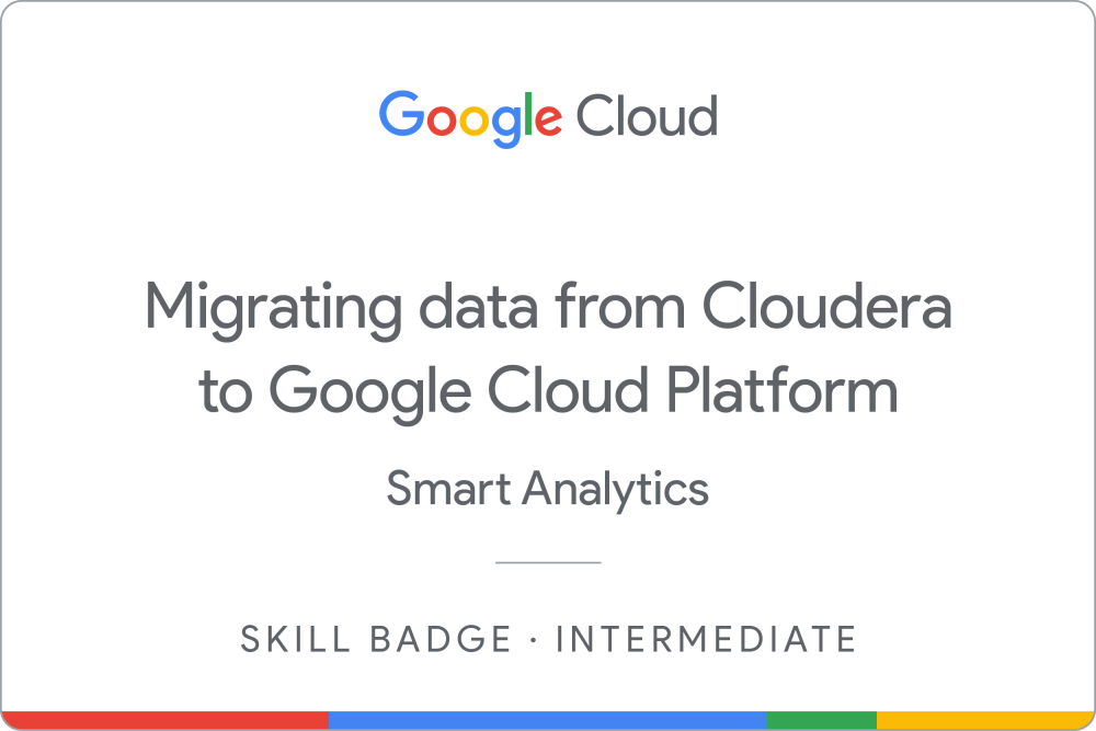 This skill badge aims to evaluate a partner's ability to migrate data from Cloudera to Google Cloud Platform. Learners will gain hands-on experience through labs and achieve comprehensive knowledge and practical skills for migrating data from Cloudera to Google Cloud Platform.
