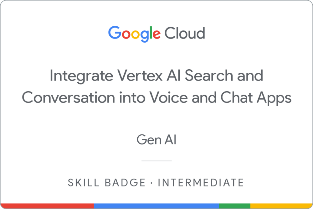 This course on Integrate Vertex AI Search and Conversation into Voice and Chat Apps is composed of a set of labs to give you a hands on experience to interacting with new Generative AI technologies. You will learn how to create end-to-end search and conversational experiences by following examples. These technologies complement predefined intent-based chat experiences created in Dialogflow with LLM-based, generative answers that can be based on your own data. Also, they allow you to porvide enterprise-grade search experiences for internal and external websites to search documents, structure data and public websites.