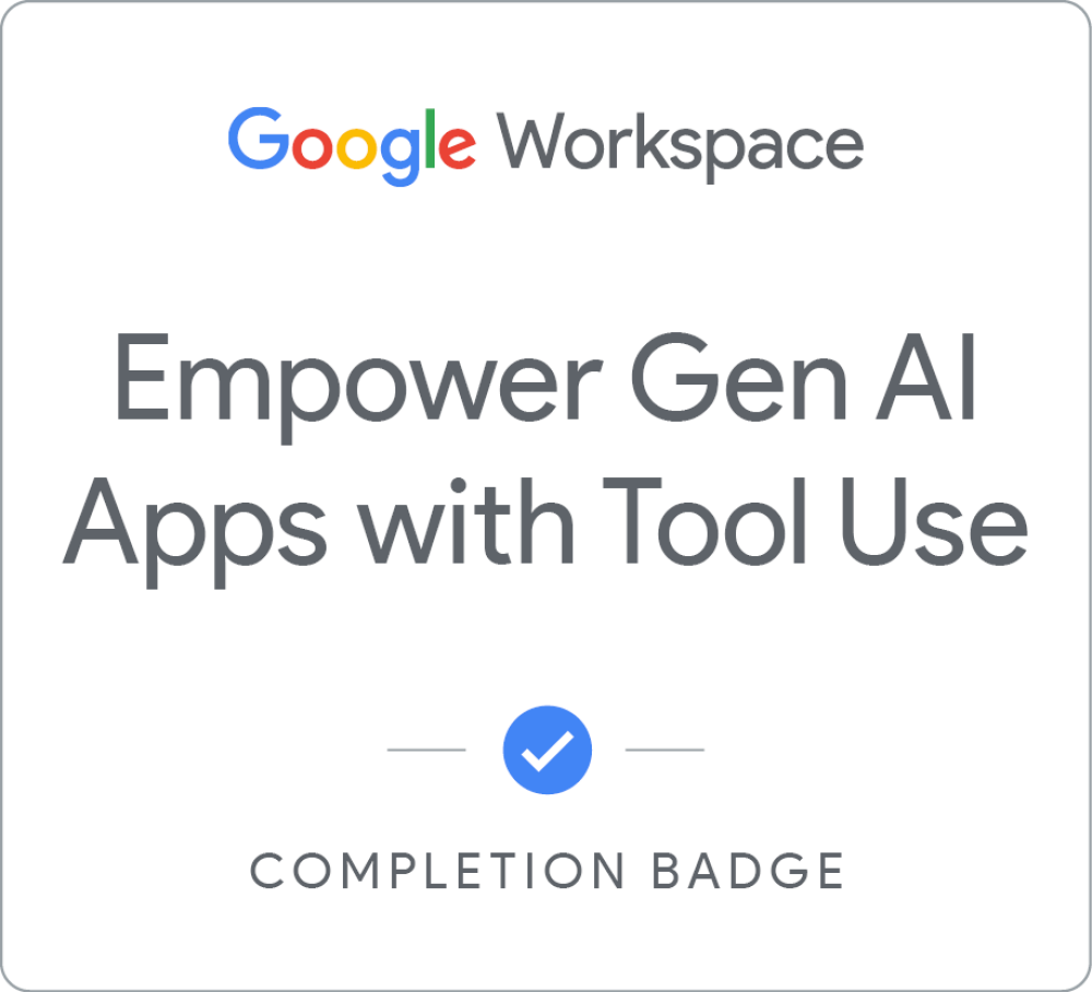 Complete the Extend Gemini with controlled generation and Tool use skill badge to demonstrate your proficiency in connecting models to external tools and APIs. This allows models to augment their knowledge, extend their capabilities and interact with external systems to take actions such as sending an email. A skill badge is an exclusive digital badge issued by Google Cloud in recognition of your proficiency with Google Cloud products and services and tests your ability to apply your knowledge in an interactive hands-on environment. Complete the assessment challenge lab, to receive a skill badge that you can share with your network. When you complete this course, you can earn the badge displayed here and claim it on Credly! Boost your cloud career by showing the world the skills you have developed!"