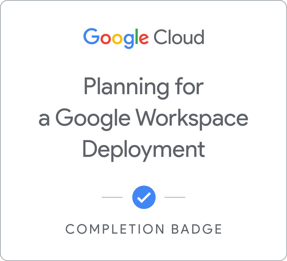 Earn a skill badge by completing the Configure your Workplace: Google Workspace for IT Admins quest, where you will get try out the Admin role for Workspace and learn to provision Groups, manage applications, security, and manage Meet. A skill badge is an exclusive digital badge issued by Google Cloud in recognition of your proficiency with Google Cloud products and services and tests your ability to apply your knowledge in an interactive hands-on environment. Complete the skill badge quest, and final assessment challenge lab, to receive a digital badge that you can share with your network.